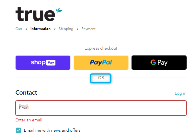 Skip the Buttons: On the cart page, ignore the colorful "Express Checkout" buttons at the top. Instead, select "Check Out" or "Check Out as Guest".