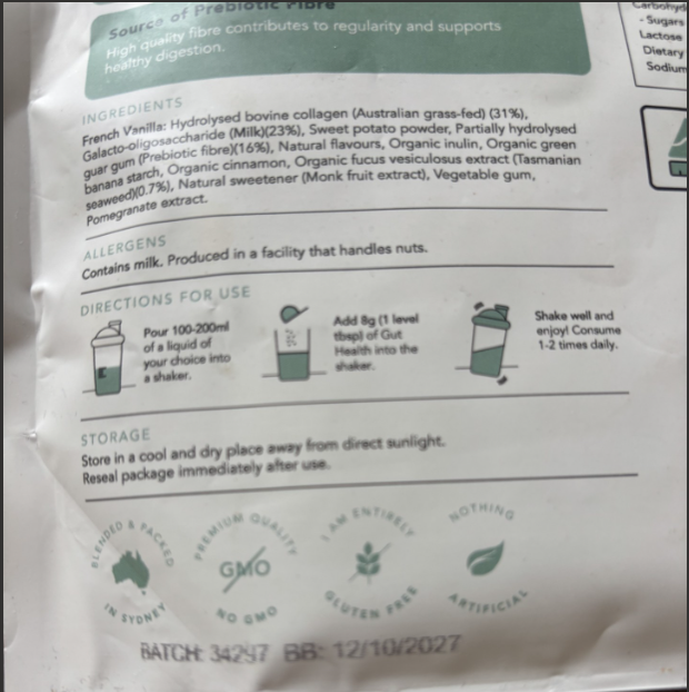 The Batch is listed as a 5 digit number and the best before date is also listed.Â